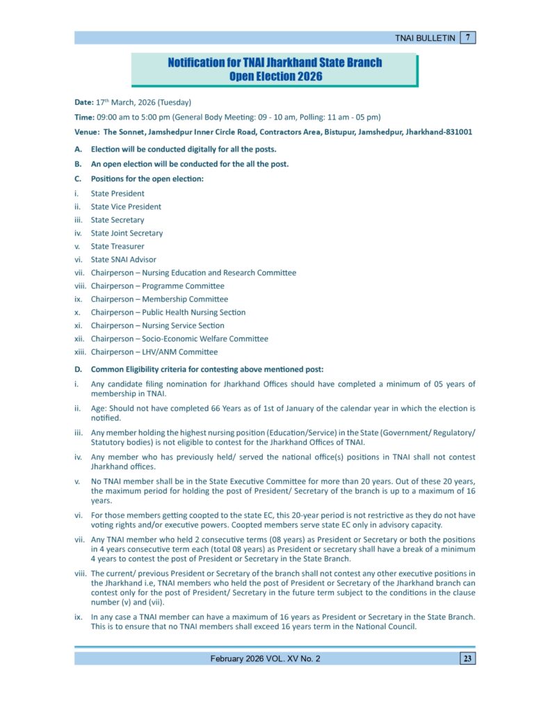 TNAI Jharkhand State Branch Election 2026